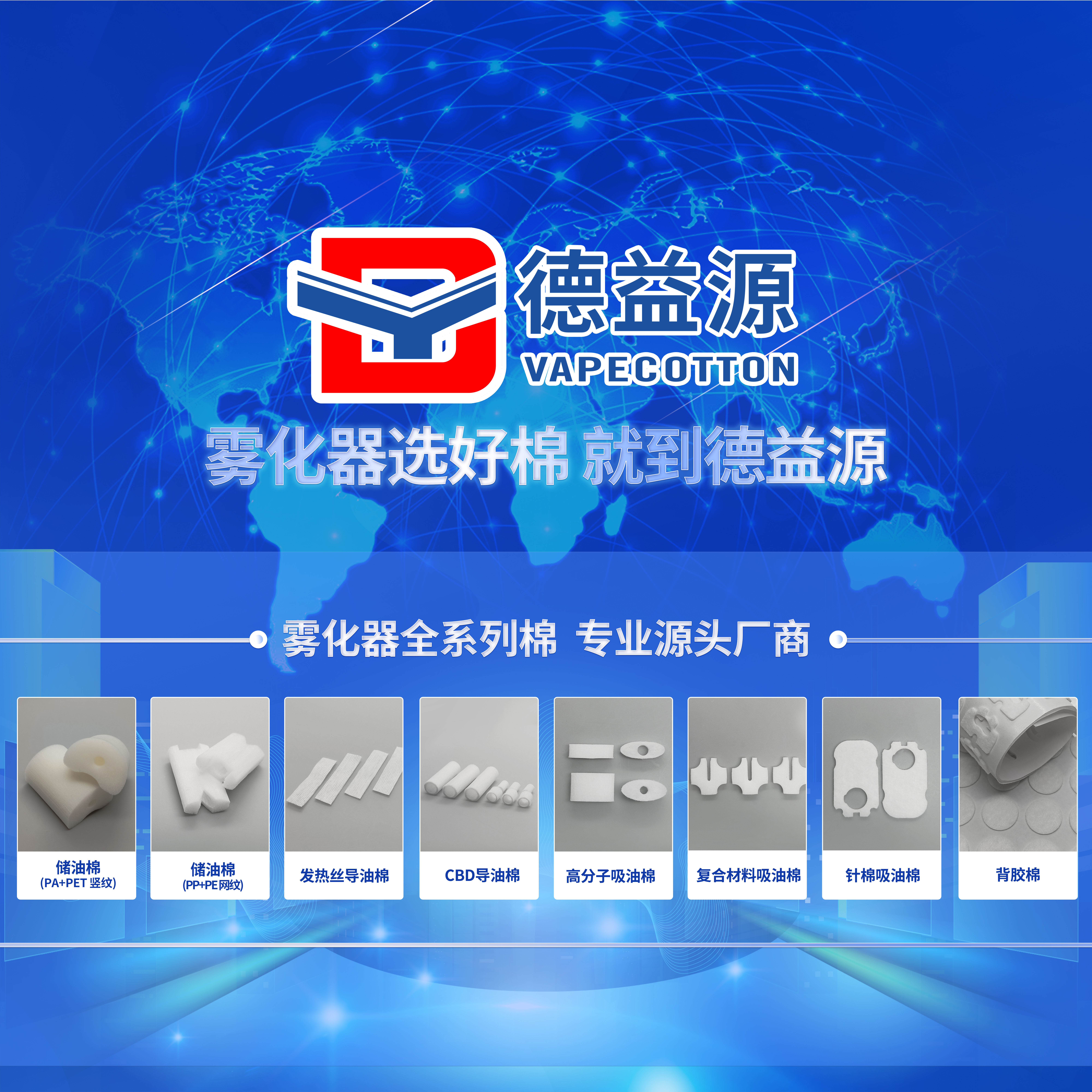公司秉承”誠信為本、創新為魂“的核心價值觀,深耕霧化核心配套,成功研發一體式儲油棉、發熱絲包棉、吸油棉、CBD陶瓷導油棉、背膠棉、小煙防滲漏濾嘴等全系列霧化器棉產品。
